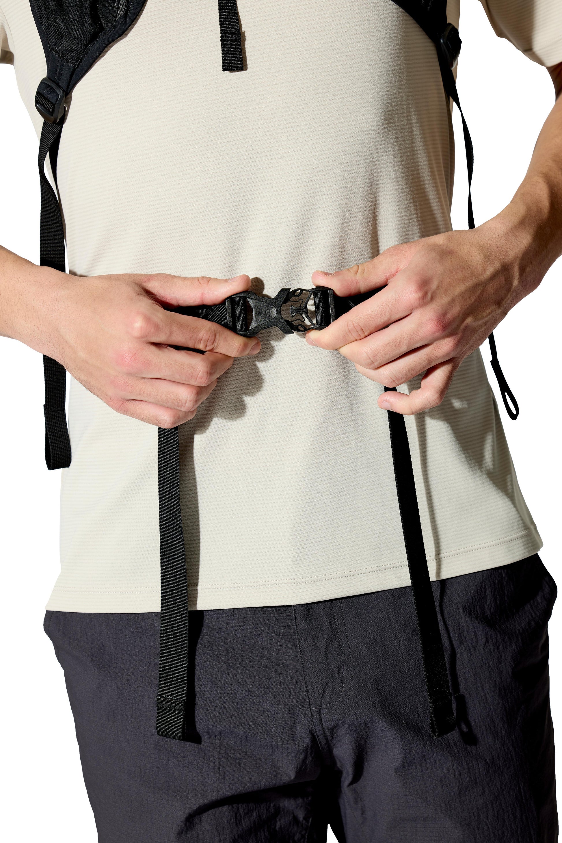 - ソフトフラスクや必需品を素早く取り出せるチェストストラップ収納